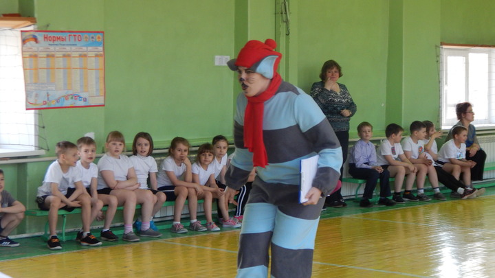 20 апреля в спортивном зале МБОУ СОШ № 91 в рамках областного марафона «Крошка-ГТОшка работниками Центра тестирования ГТО для ребят первых классов была организована спортивно-развлекательная эстафета. Приветствовал ребят веселый и спортивный кот Кузбарсик!