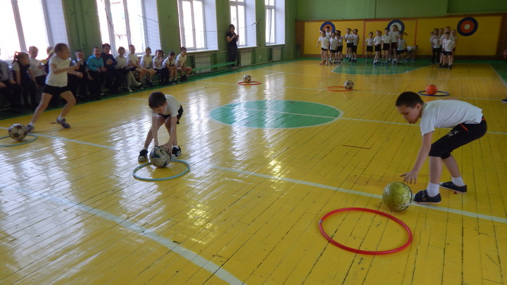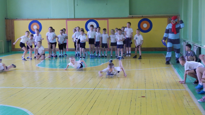 Три команды первоклашек соревновались в быстроте, силе и ловкости – бегали с мячом, преодолевали препятствия на скейтбордах, выполняли виды испытаний Комплекса ГТО: прыжок в длину с места, наклон с прямыми ногами на гимнастической скамье, сгибание и разгибание рук.