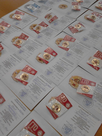Затем они торжественно вручили удостоверения и знаки отличия ГТО.